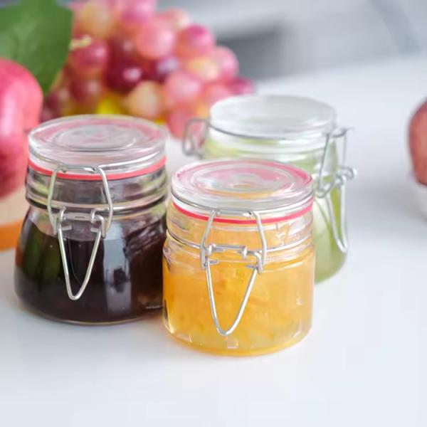 Popular Wholesale 100ml 180ml 280ml Food Grade Round Honey Glass Jar With Clip Cover Images |